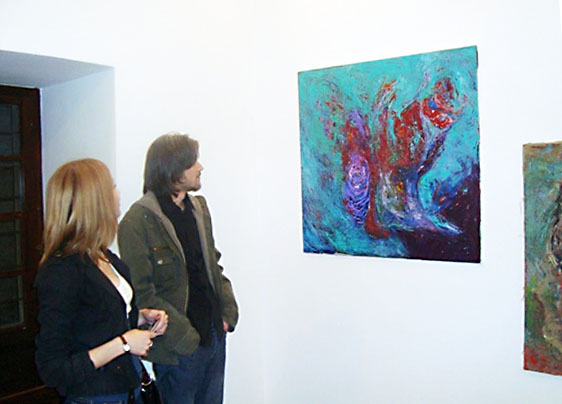By the time, few new artists have appeared, and next generation was ready to show what they can do. This is main reason for VD to take part in this exhibition, because, we need to reorganize and to set things and everything level up, and to free up space for new creative forces. Exhibition called 2+12, with its symbolical title, is connected with 14 rooms, how much this gallery has. This Gallery called Kursumli Medresa was once Muslims school and pupils were in mentioned chambers. In the middle of this architectural beauty is kind of a small obelisk shaped monument, with common fountain on it, surrounded by some space between the monument and the octagonal shaped walls. On the walls are doors of chambers, and every artist took one room for his works, but also outside walls some artist used.